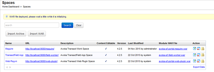 Press "Import WAR", and browse to the files you just created with the installer. You will need to find the "Deploy" directory, which will contain a single .war file.