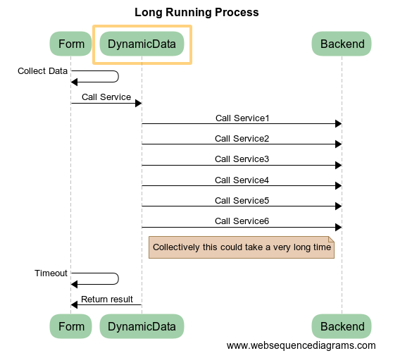 Sometimes you may need to invoke a Dynamic Data Service from a form, and you know that it may take some time. Perhaps there is a back-end service that is slow, or perhaps you are calling several different services in order to get your answer.