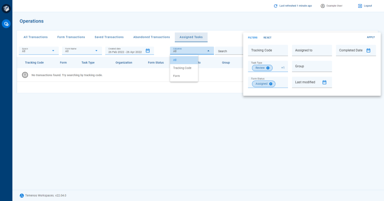 Journey Manager allows you to create and view tasks, including an option to search for associated transactions which helps you to identify and manage tasks.You can interact with these transactions on the Assigned Tasks view. This view appears on the Operations portal's List screen. For general information about the List screen, see Manage Transactions.