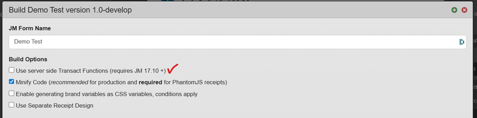 1- Build a maestro form without enabling 'Use server side Transact Functions' checkbox and deploy it to JM.