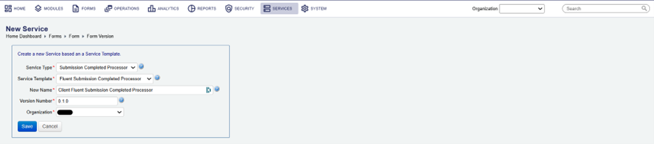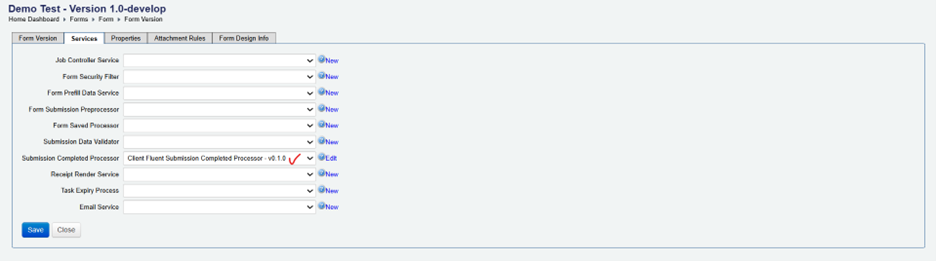 2- Go to Form > Form version > Submission completed processor > Click on New or select any existing service from the dropdown.