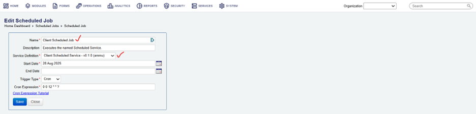 6- Render the form, save it, and then run the ‘Client scheduled job’.